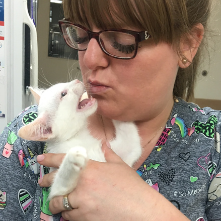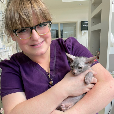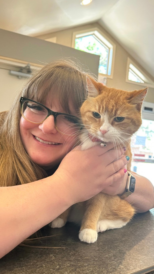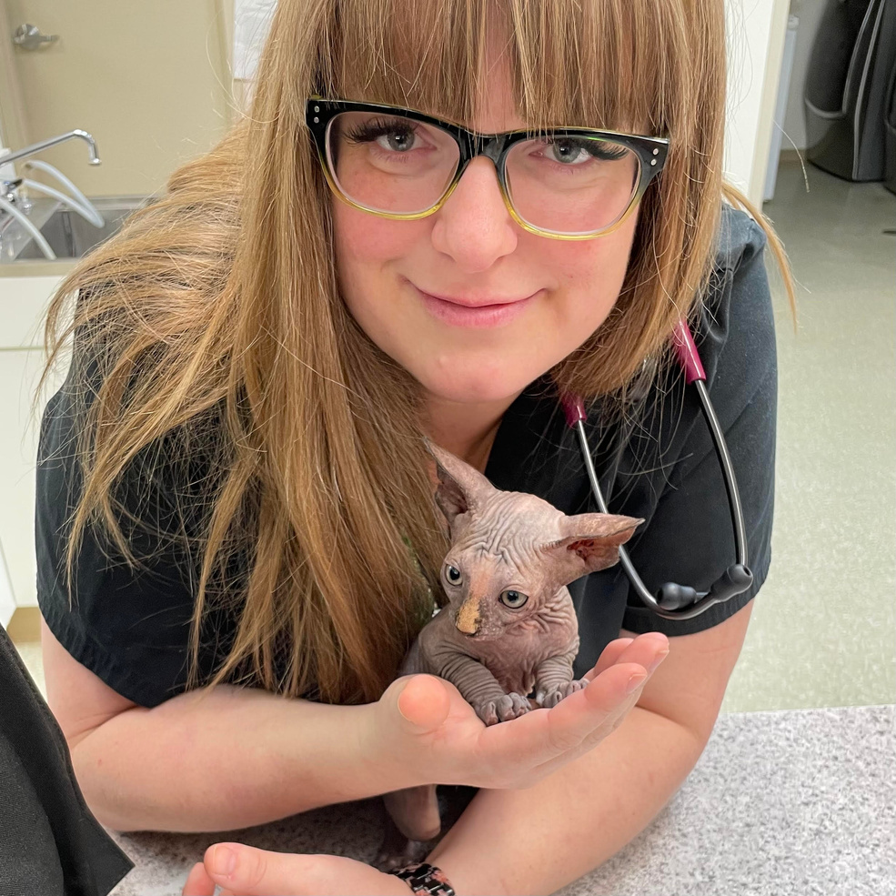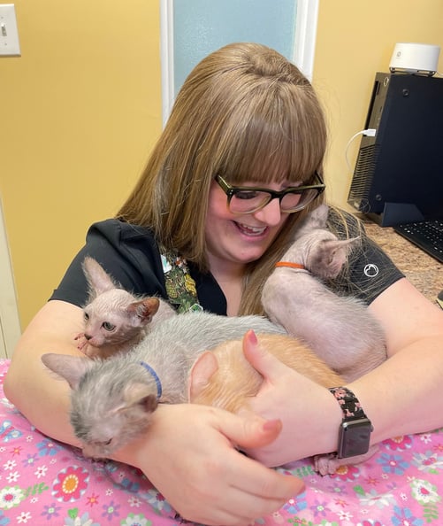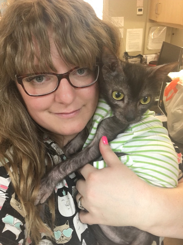 When I am not enjoying my kitty patients, I am home with my hubby TJ, 3 children (Ava, Everly, and Dax), a lab x named Sasha, 6 cats (Jack, Johnny, Bear, Violet, Nora, and Olive aka Bean), and a legitimate jungle of houseplants.